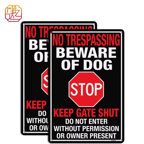 Cuidado con las señales de parada para perros, venta al por mayor, señales de tráfico de aluminio de 8*12 pulgadas personalizadas, impresión UV, reflejo, letreros de calle para exteriores a medida